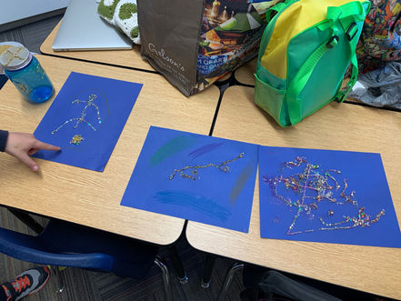 Some of the amazing projects we’ve worked on so far were crafting our own discovery jars that students got to decorate with glitter glue and their own drawings of whatever artifacts they wanted. Some chose dinosaurs, others chose to recreate their favorite gemstones from our gemstone hunt in an earlier class, others wanted to draw their favorite ancient big cats. We will soon be filling these discovery jars with kinetic sand and hunting for more artifacts, gems, and fossils!