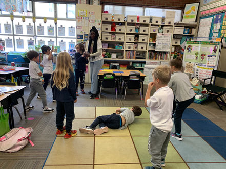 In an earlier class, students got to draw their favorite dinosaurs or prehistoric creatures and then glue Q-Tips down to create the skeletons of the creatures. Max wanted so badly to draw his favorite dinosaur, a T-Rex, but was really struggling with the assignment, saying he didn’t know how to draw one. So Henry quickly stepped in and offered his help to draw one with Max so he could still create the skeleton with the rest of the class. Max’s turned out so good, he left it in the classroom for others to see.